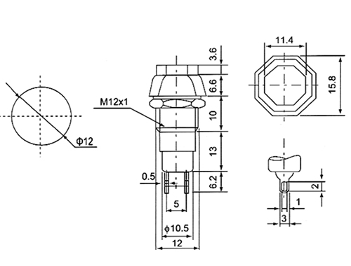 PBS-14A ON-OFF 六角;PBS--14B OFF-(ON) 1A250VAC